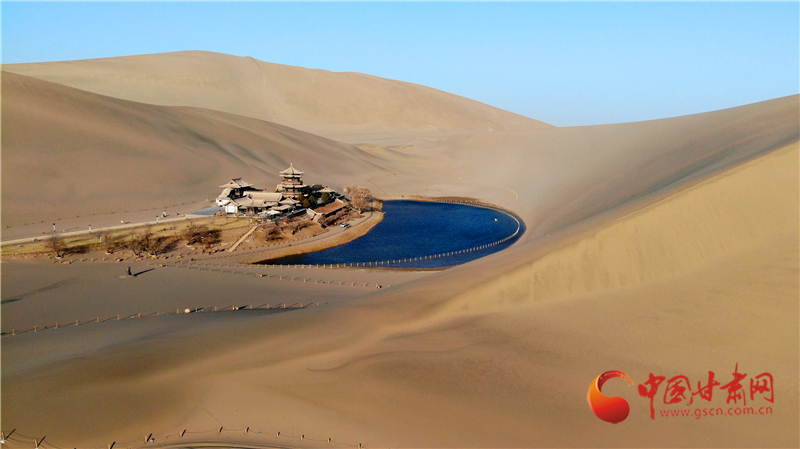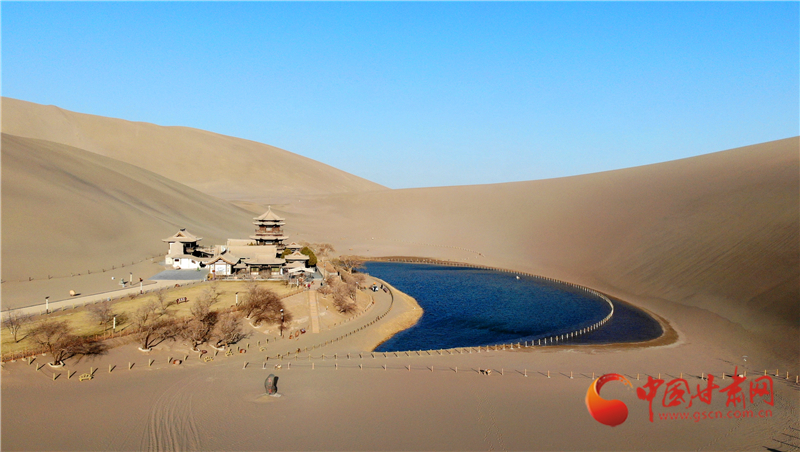 這是3月17日拍攝的甘肅省敦煌市鳴沙山月牙泉景區(qū)(無(wú)人機(jī)照片)。