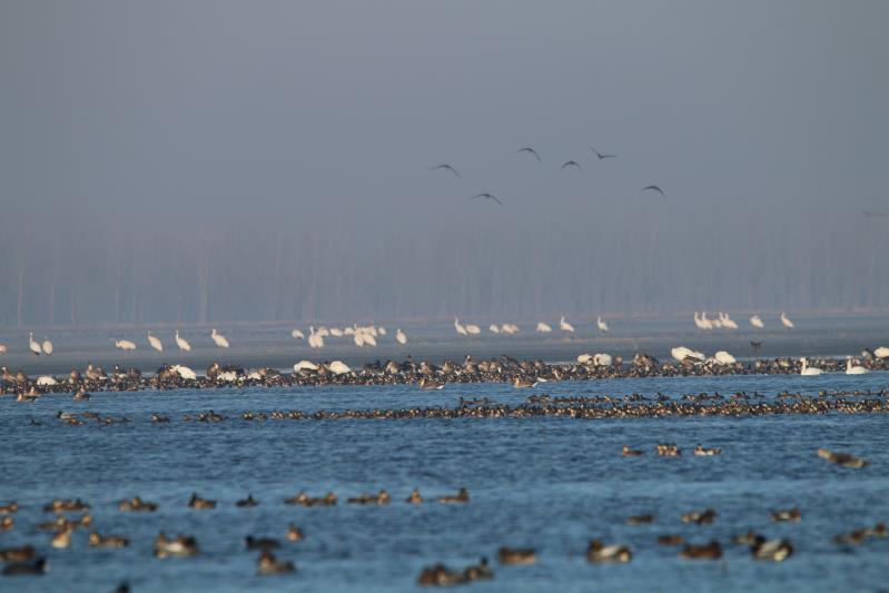 隨著環(huán)境保護(hù)、退耕還濕工作的推進(jìn),獾子洞濕地面積已經(jīng)達(dá)到歷史最大,成為候鳥遷徙的重要驛站,每年春秋兩季,這里都會(huì)呈現(xiàn)萬鳥云集、欣欣覓食的生態(tài)場(chǎng)景。“飛時(shí)猶如云遮日,落時(shí)不見湖邊草”,堪稱世界奇觀。(郭蕾 于勝地、常繼民)