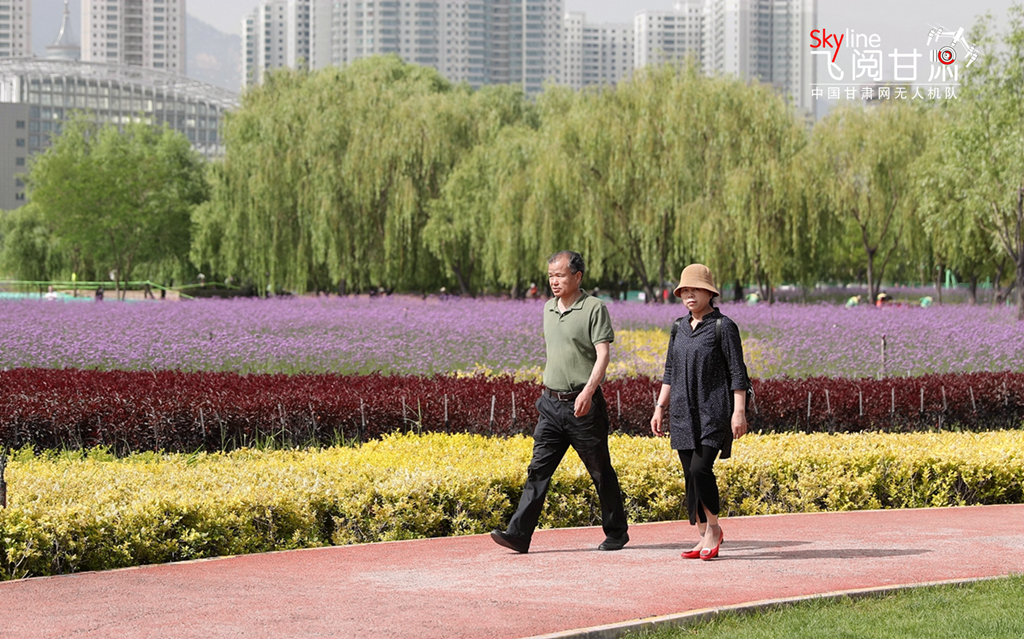 進入六月,蘭州馬拉松公園種植的大片馬鞭草已進入花期,還有醉蝶花、金雞菊、金娃娃萱草等花卉點綴出豐富的色帶,讓大河之城更具詩情畫意。下面請跟著中國甘肅網(wǎng)《飛閱甘肅》的鏡頭從空中俯瞰夏日的花海,然后再來個鮮花特寫,感受市民徜徉其中的那份愜意。