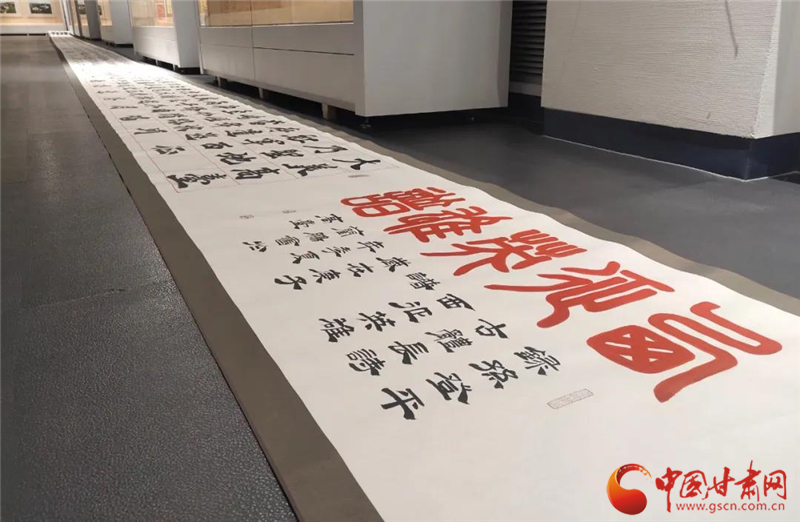 中國甘肅網(wǎng)8月23日訊 (本網(wǎng)記者 張?zhí)m琴)為了“講好西路軍的故事,傳承好紅色基因”,銘記革命英烈的英雄事跡和英勇獻身的革命精神。近日,張掖高臺縣展開了形式多樣的主題活動,其中在紅色主題文藝精品展上,書法作品百米長卷《西征英雄譜》再現(xiàn)了紅西路軍將士不畏艱險、浴血奮戰(zhàn)的悲壯歷史場景受到好評。