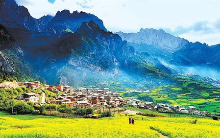 在銀裝素裹的雪山圍繞之中,是保留著最原生態(tài)的藏族村落。全木質(zhì)的房屋、圍欄中的牦牛綿羊、從田地返回的熱情藏民、傍晚時山谷間繚繞的炊煙……全都是現(xiàn)代城市早就失落的質(zhì)樸之美。
