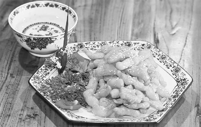 這道菜一端上來,完全是糖醋里脊的扮相,實(shí)際上它是一道甜甜蜜蜜的面食。馉子,這個詞我也是第一次見,翻閱詞條,發(fā)現(xiàn)它在古時指的就是一種圓形、有餡、用油煎或水煮的面食。