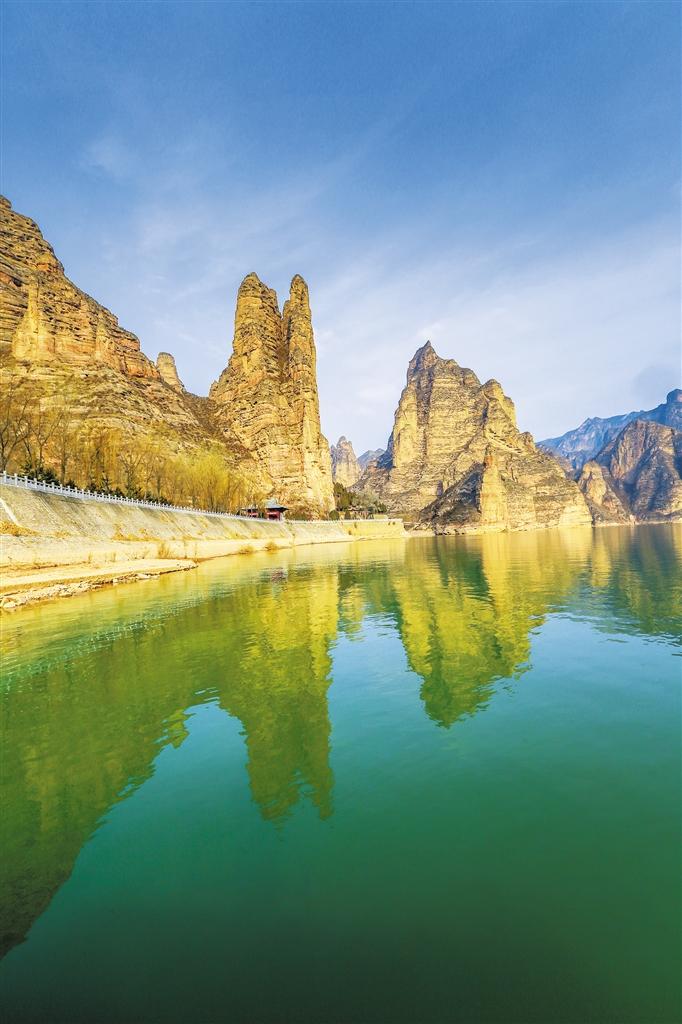 炳靈寺世界文化遺產旅游區(qū)的標志姊妹峰。首席記者 田蹊 攝