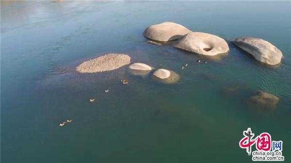 1月12日,在湖南桃江羞女湖國(guó)家濕地公園當(dāng)?shù)財(cái)z影家協(xié)會(huì)成員用無(wú)人機(jī)有幸拍到一群正在資江戲水的野生保護(hù)物種——斑嘴鴨。