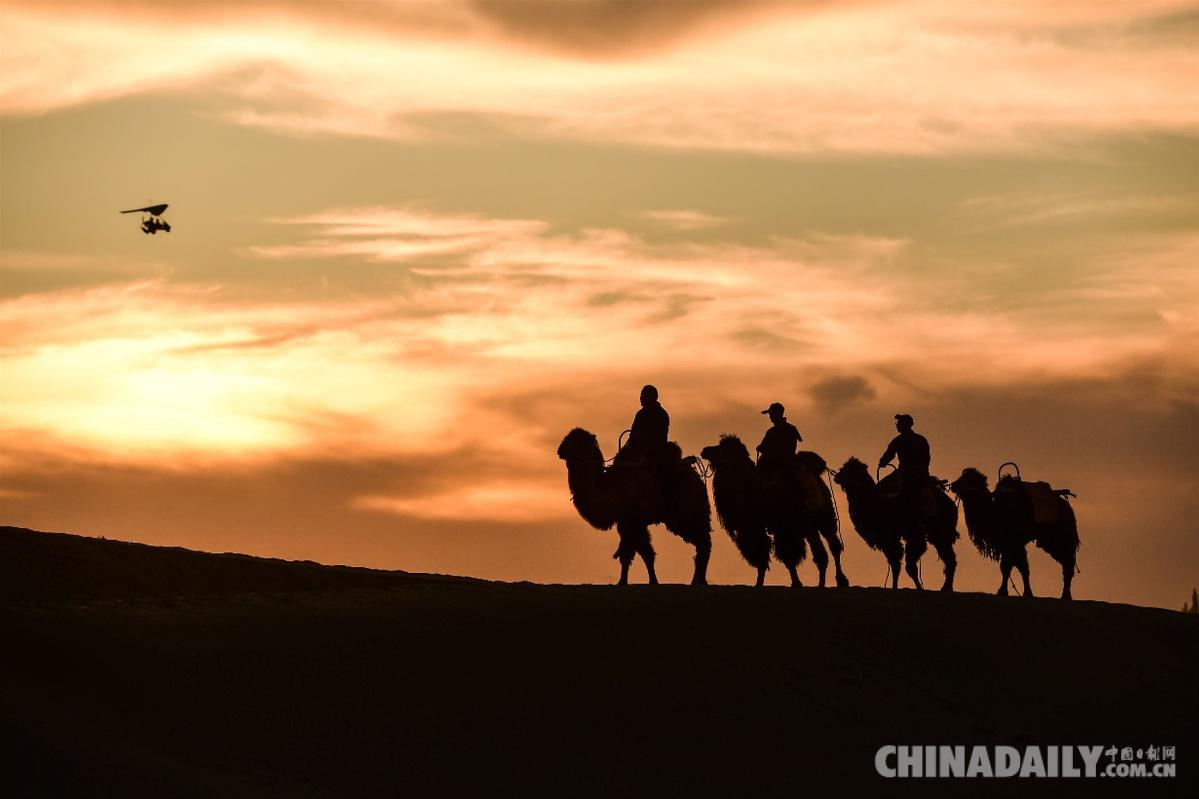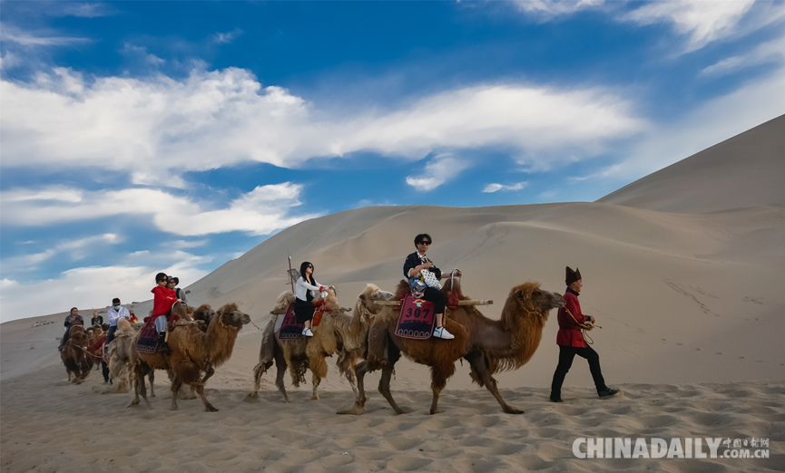 近日,來(lái)絲綢之路國(guó)際文化旅游名城甘肅敦煌游玩的游客,在騎駱駝暢游鳴沙山的過(guò)程中,驚異地發(fā)現(xiàn),這里牽駱駝的駝戶穿上了一種古裝戲中才有的“胡服”,戴一頂高高的帶有帽檐的駝色帽子,頓感大漠旅行情趣倍增,絲路風(fēng)情更加濃郁。