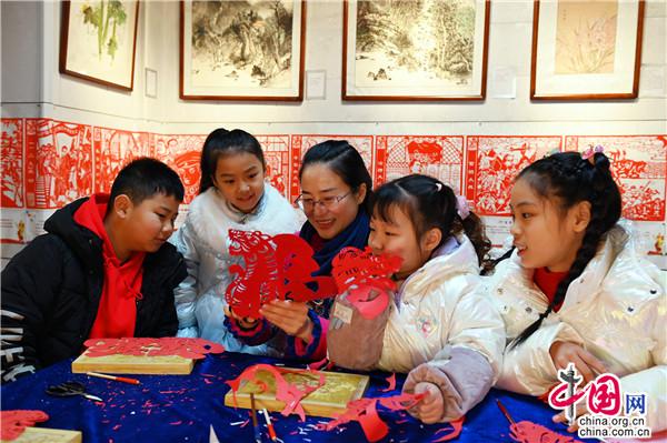 “?;⒆髌废盗卸际俏易约涸O計創(chuàng)作的,一共18款,每款的造型都不一樣。”1月26日,在位于湖南省新邵縣嚴塘鎮(zhèn)大源村的非遺剪紙展覽館,邵陽剪紙非遺傳承人馬麗婭帶著幾名萌娃學習剪紙,為即將到來的虎年春節(jié)增添一抹喜慶。