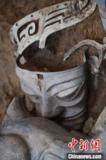 8號祭祀坑等待提取的青銅神獸。張浪 攝