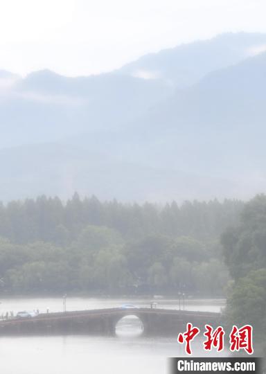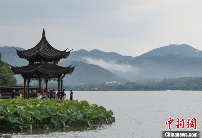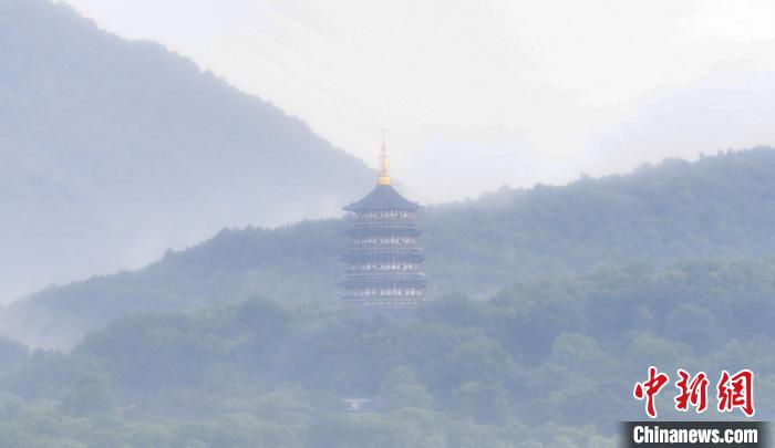 持續(xù)高溫天氣后,杭州終于迎來降雨,久違的大雨讓西湖景點和群山在雨水和云霧中呈現(xiàn),朦朧的景致如一幅山水畫一樣,引游人觀賞。