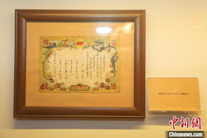 圖為博物館展出的民國(guó)時(shí)期的訂婚證書(shū)?!⒘?nbsp;攝