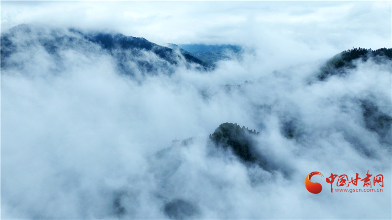 連續(xù)兩日秋雨綿綿,位于榆中縣的興隆山間云霧繚繞蔓延,隨著云霧不斷流動(dòng)、飄浮,群峰也隨之千變?nèi)f化,宛如仙境。