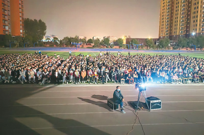 河南舞鋼第二高級中學(xué)校園公益電影放映現(xiàn)場。本文作者供圖