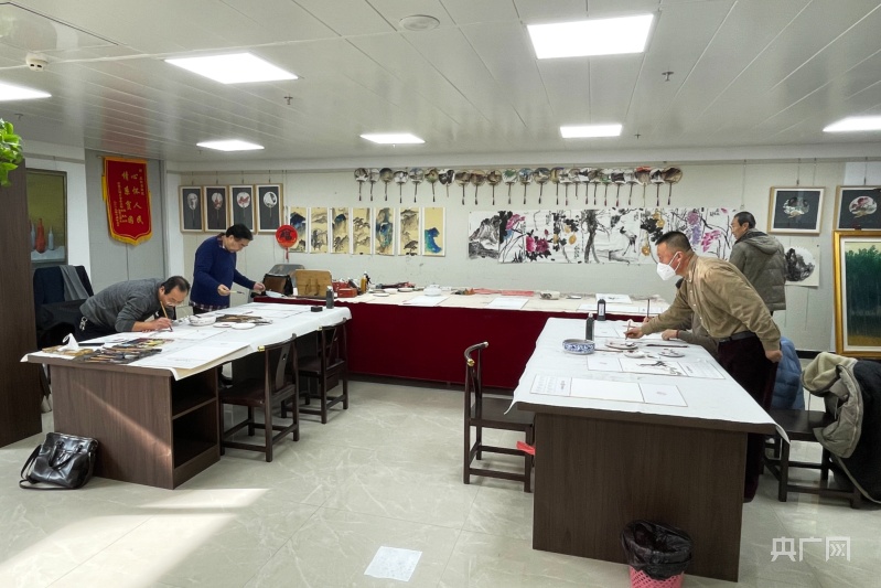市民在美術(shù)館內(nèi)進(jìn)行書畫創(chuàng)作(央廣網(wǎng)發(fā) 慶陽(yáng)市委宣傳部 供圖)