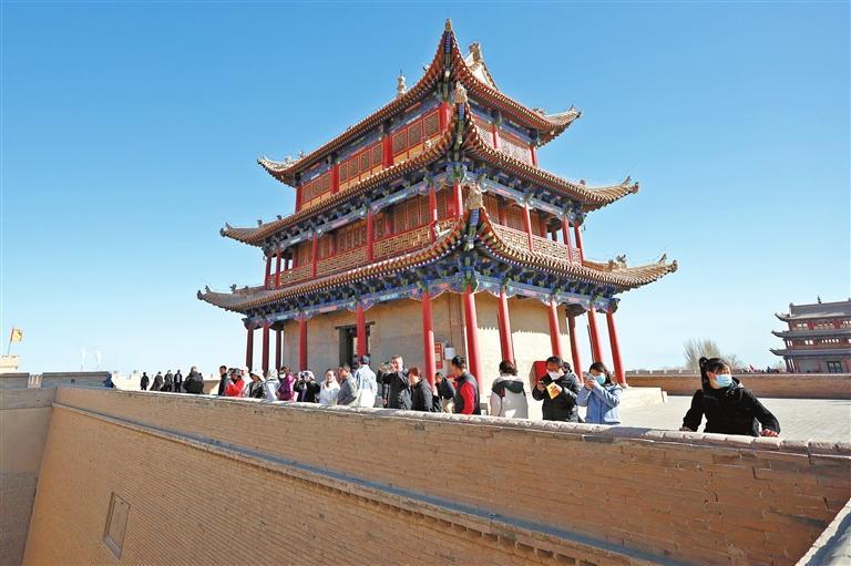 3月4日,游客在嘉峪關(guān)關(guān)城景區(qū)參觀游覽。春暖復(fù)蘇,甘肅省不少古絲綢之路節(jié)點城市喜迎旅游開門紅。在擁有世界文化遺產(chǎn)的甘肅省嘉峪關(guān)市,歷史文化古跡、現(xiàn)代主題樂園、夜市等景點,都吸引了不少游客前來游覽體驗。今年以來,當(dāng)?shù)赝瞥鑫穆孟M券、景點優(yōu)惠套票、獎補扶持政策等一系列措施,提振文旅消費市場信心,助推絲路文旅產(chǎn)業(yè)強勁復(fù)蘇。