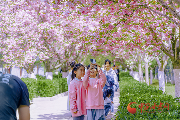 人間四月天,一場浪漫的賞櫻盛宴正在隴南金徽酒廠開啟,來自各地的游客暢游在櫻花大道,踏青游玩,于花海中邂逅美好春色。