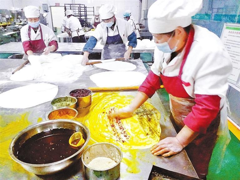 4月的蘭州,黃河兩岸花紅柳綠,永登縣城甘肅丁娃食品有限公司手工生產(chǎn)車間里,伴著一股天然的胡麻籽、玫瑰醬、香豆等混合的香氣,工人們正為一種傳統(tǒng)美食忙碌著。