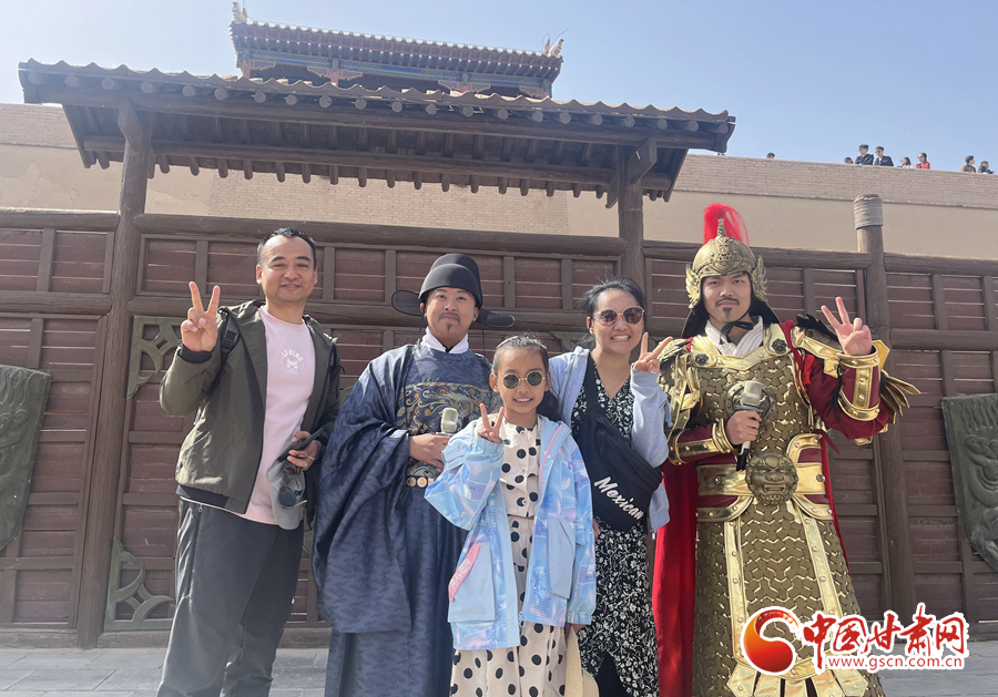 中國甘肅網(wǎng)5月3日訊(通訊員 陳楚)“開城,迎賓。”5月1日上午,在嘉峪關(guān)關(guān)城景區(qū),隨著號角聲響起,兩名門衛(wèi)士兵緩緩打開城門,來自全國各地的游客,隨著守門將軍的步伐,誓師出征,游客們置身歷史氛圍,仿佛回到古時的大漠邊關(guān)。
