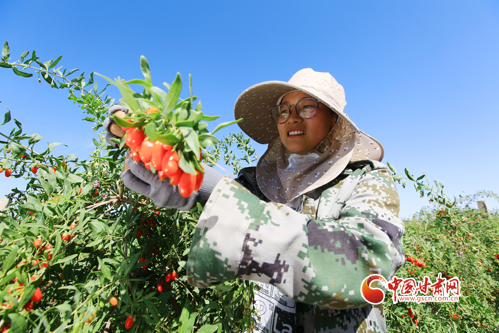 近日,嘉峪關(guān)市新城鎮(zhèn)一公司的1.89萬畝頭茬枸杞迎來采收季,枸杞種植戶搶抓晴好天氣采摘、拉運(yùn)、晾曬枸杞,枸杞園內(nèi)外一派繁忙的豐收景象。