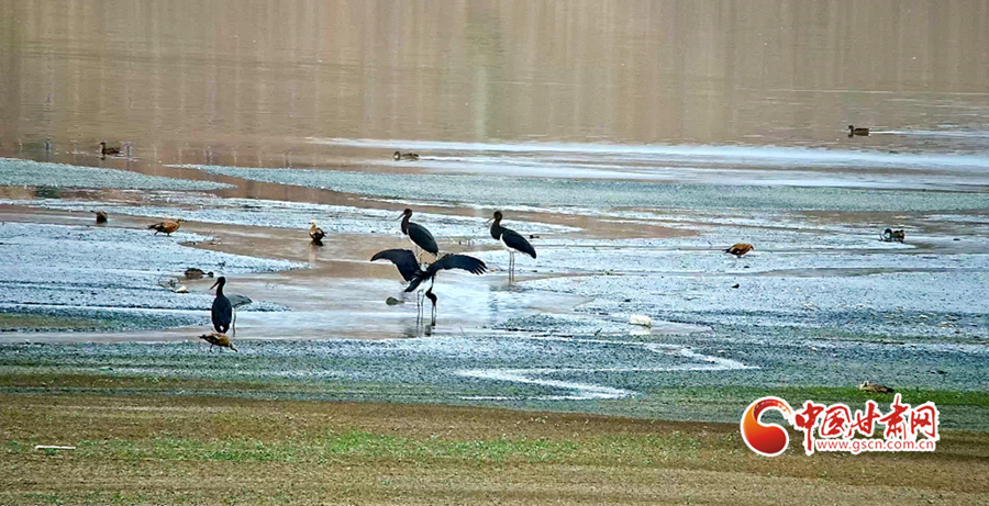 近日,山丹縣濕地保護(hù)站工作人員在開(kāi)展候鳥(niǎo)監(jiān)測(cè)工作時(shí)發(fā)現(xiàn)14只被稱為“鳥(niǎo)中大熊貓”的黑鸛。