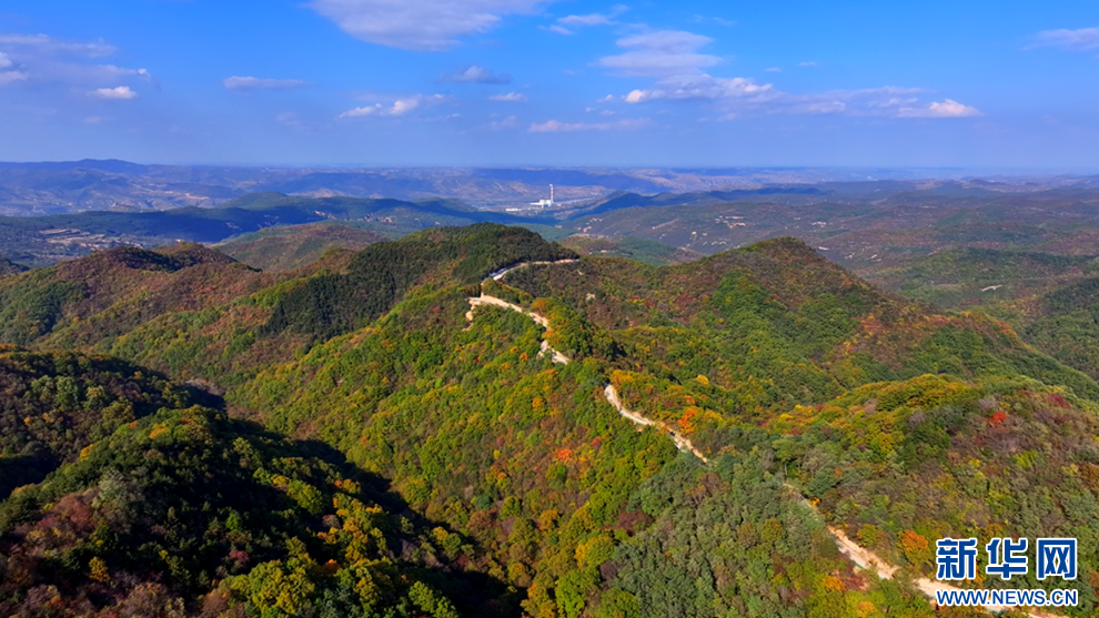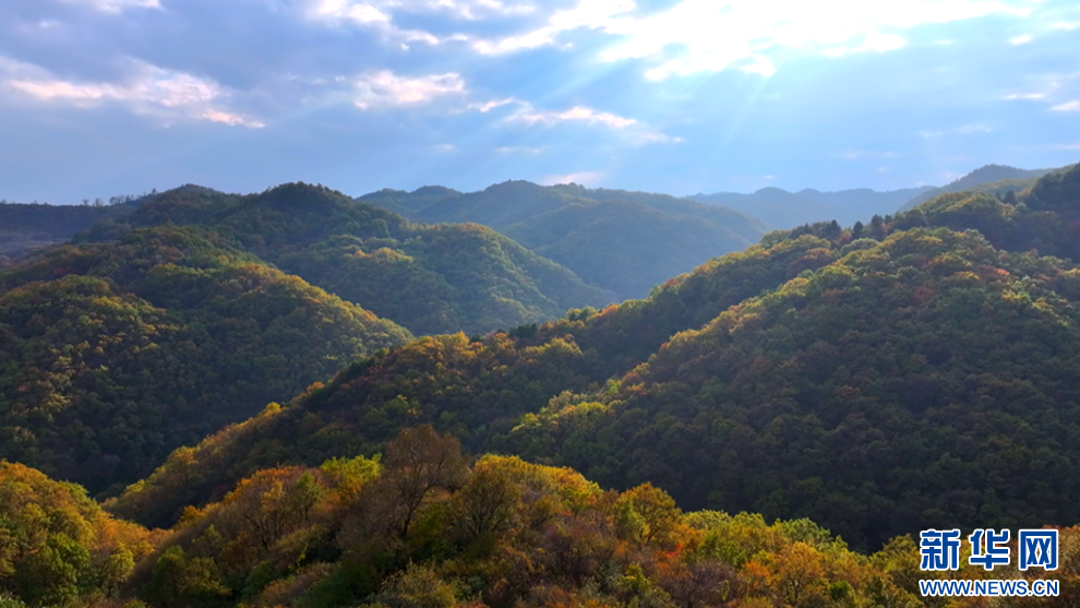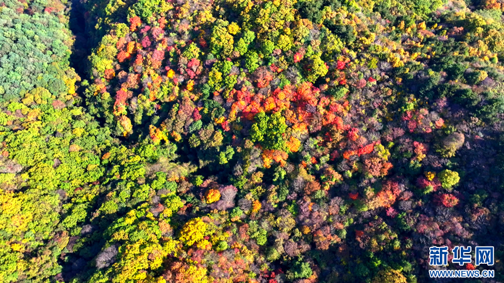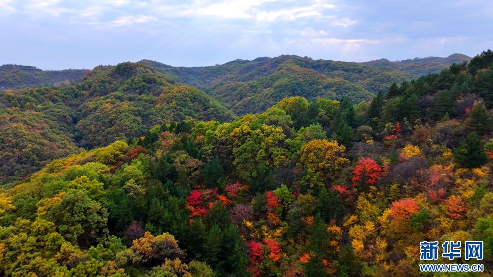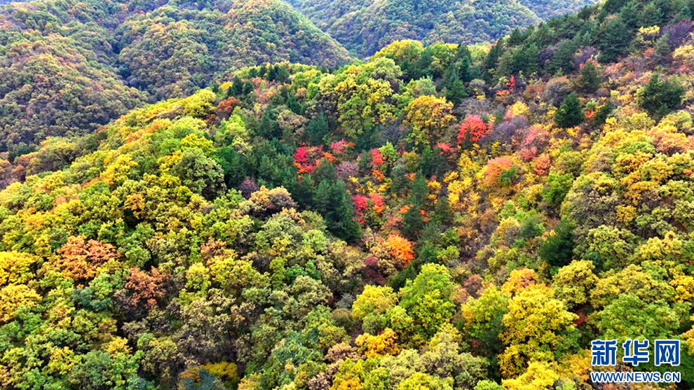 深秋時節(jié),甘肅省平?jīng)鍪谐缧趴h的唐帽山層林盡染,群山疊彩,勾勒出一幅絢麗多姿的美景圖。(圖片:高亮 文字:關(guān)改琴)