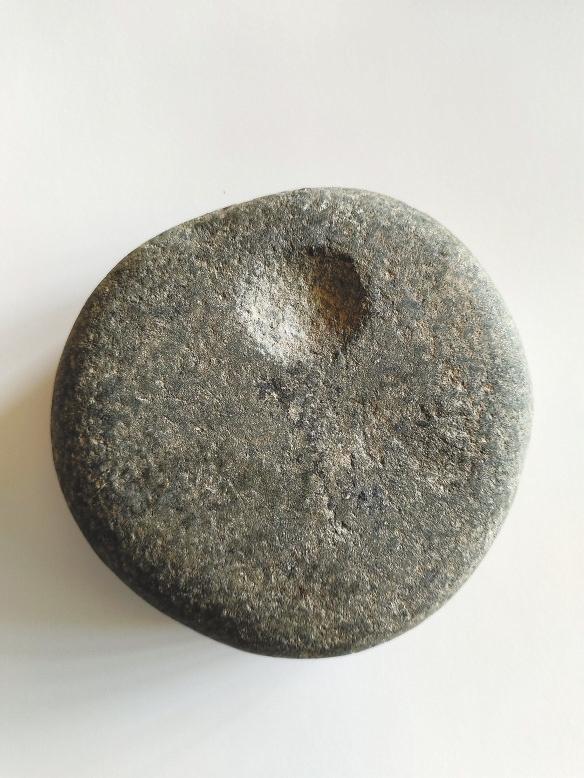 齊家文化的“盤狀石器”除“敲砸器”以外,還有一點比較特殊,其雙面分別琢制有日紋和月紋。目前所知,這類“盤狀石器”只在齊家文化遺存中出現(xiàn),是齊家文化石器的特有器型,石質(zhì)大多為礫石、河礫石。這種齊家文化特有的琢紋盤狀石器,學(xué)界尚未有統(tǒng)一命名,通常所見為:“圓形見手窩敲砸器”“刻符石”“刻符石器”。民間俗稱為:“練功石”“日月石”“星月石器”等。