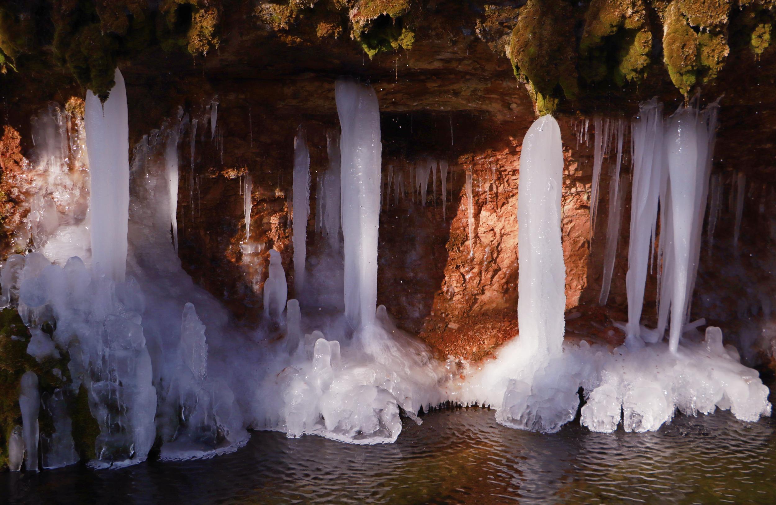 連日來,崇信縣持續(xù)降溫,AAAA級(jí)旅游景區(qū)龍泉寺泉水凝結(jié)成奇特秀麗的冰掛、冰柱、冰花美景,懸掛于山間,如萬把銀色寶劍垂吊,展現(xiàn)著冰肌雪骨的風(fēng)姿,似盞盞熒光閃爍,在陽光的照耀下熠熠生輝、耀眼奪目,引來不少游客拍照觀賞。(崇信縣融媒體中心記者:孫淑霞 張百耀)