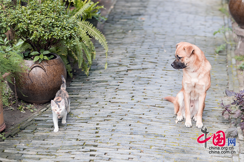 行在青石板路上,總會(huì)遇到不同的「原住民」和主人,狹路相逢時(shí),倏地就跑進(jìn)了自己的地盤(pán)。