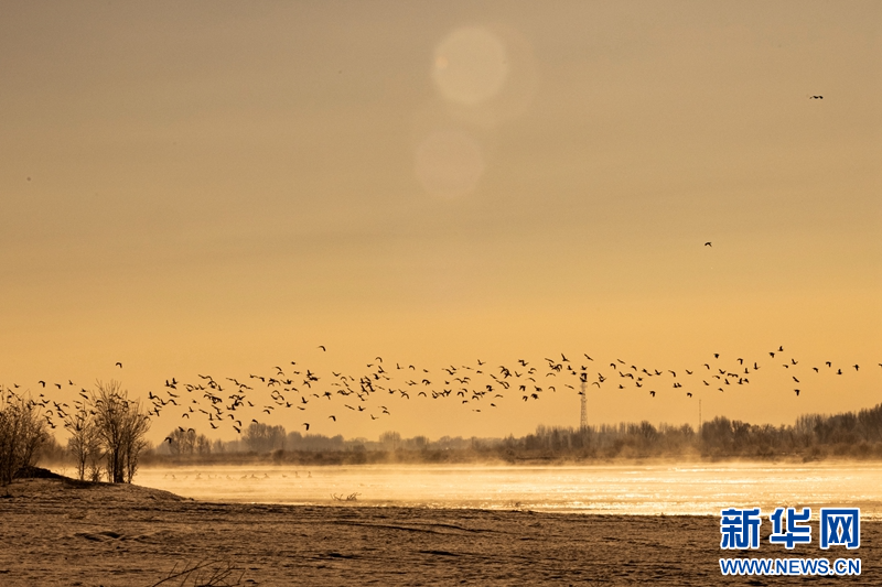 1月21日,冬日清晨,甘肅張掖黑河濕地日出如畫。一輪冉冉升起的紅日絢麗奪目,與河流、樹木、候鳥、晨霧共同構(gòu)成了一幅生態(tài)畫卷。新華網(wǎng)發(fā)(成林 攝)