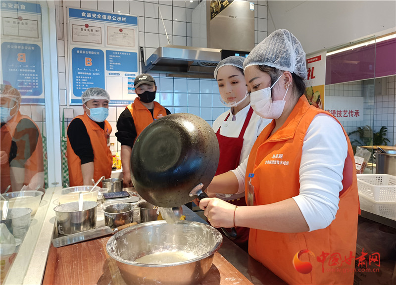 學(xué)習(xí)過程中,學(xué)員主要學(xué)習(xí)手搟粉和洋芋丸子制作技藝,以及油潑辣椒和麻辣燙底料的制作技藝,同時,老師還會在食材選擇等方面給予指導(dǎo),讓學(xué)員系統(tǒng)掌握甘肅麻辣燙制作技藝。