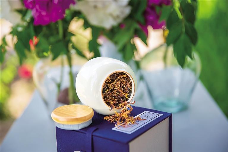 沖泡一杯牡丹花茶,一段香氣四溢的人生在茶杯里氤氳美好,花瓣與開水的碰撞是牡丹的另一種人生。牡丹花茶要玻璃杯沖泡才有意境,一朵牡丹花盛開在杯中,上下翻轉(zhuǎn),靜候片刻,茶湯呈玫瑰色,確切地說是牡丹花色,晶瑩剔透,好看又耐看,詩意無比。若錯(cuò)過了花開時(shí)節(jié),那泡一杯牡丹花茶,欣賞不一樣的花開富貴,而后啜上一口,茶水在唇齒間流過,舌尖留點(diǎn)苦澀后兩側(cè)又有點(diǎn)甘甜,后入胃,帶著一絲的回暖,也是愜意。或?qū)⒛档せò隂_泡為清香的茶,或淋灑于菜品上作點(diǎn)綴,驚艷了味蕾與視覺,賞心悅目;或端起印有富貴牡丹花的蓋碗,品一品以牡丹為原料的茶飲,美在眼前流轉(zhuǎn),花香在舌尖纏綿、流進(jìn)心底。享用牡丹的甜美芬芳,便是初夏最長情的告白之一。