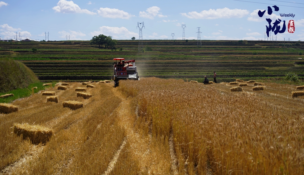 穗舞夏風,麥浪滾滾。一塊塊高標準糧田內,大型收割機開足馬力、轟鳴向前,小麥收割、麥穗脫粒、秸稈還田,一幅豐收景象。