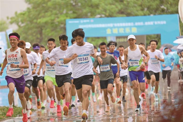 參賽者在細(xì)雨中歡樂開跑