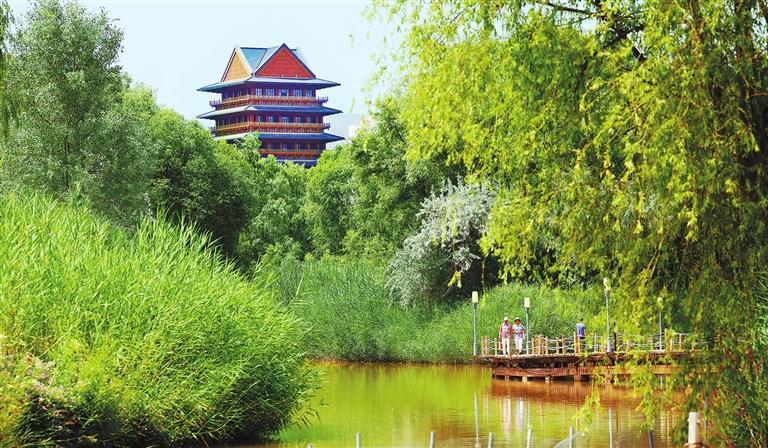 隨著黃河水位的變動(dòng),濕地四季景色各異。亭臺(tái)樓閣、小橋流水,漫步其間讓市民和游客領(lǐng)略到黃河濕地的獨(dú)特風(fēng)貌。