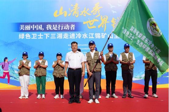 活動現(xiàn)場,與會領(lǐng)導(dǎo)還為冷水江綠色衛(wèi)士生態(tài)環(huán)境志愿服務(wù)隊進行了授旗。