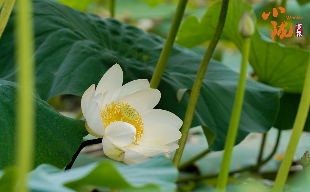 一朵朵、一簇簇、白色的荷花星星點點、清美動人點綴于成片的翠綠色荷葉間或肆意怒放,或含苞待放形成一幅美麗的生態(tài)畫卷。
