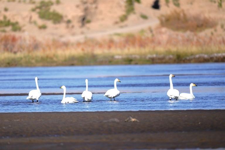 近日,高臺(tái)縣黑河濕地多次監(jiān)測(cè)到大天鵝種群,它們的翩翩降臨,標(biāo)志著天鵝一年一度的越冬之旅正式開啟。 大天鵝是雁形目鴨科天鵝屬鳥類,又稱黃嘴天鵝,全身潔白,僅頭稍沾棕黃色;喙黑色,上喙基部黃色,喙端黑色;跗跖、蹼、爪也為黑色,是國(guó)家二級(jí)保護(hù)動(dòng)物。天鵝對(duì)棲息地的選擇極為苛刻,它們的到來(lái)是高臺(tái)縣黑河濕地生態(tài)環(huán)境質(zhì)量?jī)?yōu)良的有力證明。