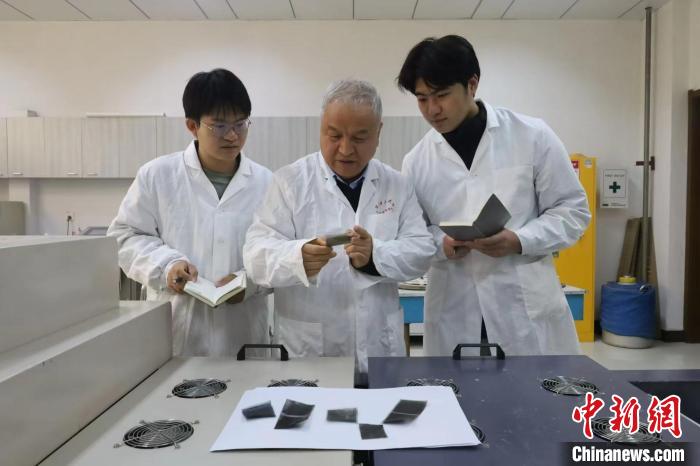 2024年5月,李玉虎(左二)和學生研究底片的修復保護方案。(陜西師范大學歷史文化遺產保護教育部工程研究中心供圖)