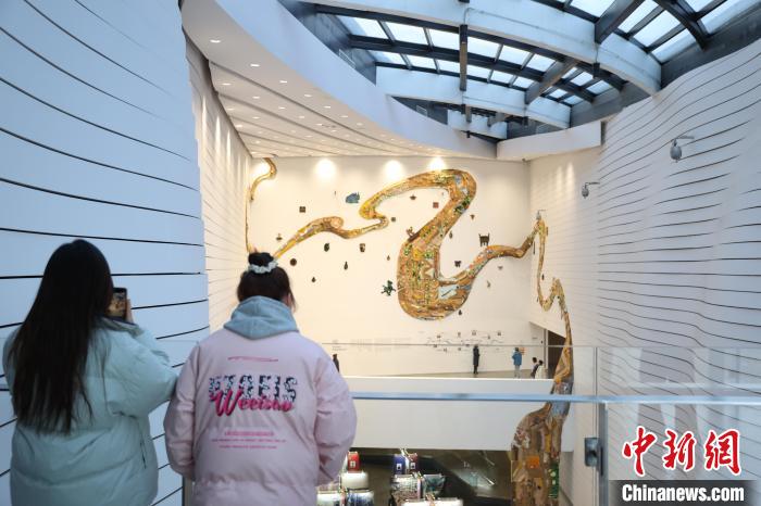 12月8日,市民在寧夏銀川當(dāng)代美術(shù)館欣賞“奔流的舞姿:藝起織造母親河”藝術(shù)展。當(dāng)日,“奔流的舞姿:藝起織造母親河”公益項目藝術(shù)展在銀川當(dāng)代美術(shù)館正式對公眾開放。該項目匯聚了黃河兩岸200余位織手的巧作,按照黃河特點和視覺審美拼接和織造,織造出一個極具視覺效果的“大河”,通過藝術(shù)的橋梁,展示奔涌黃河的優(yōu)美舞姿和不息精神,同時激發(fā)社會各界對黃河生態(tài)保護(hù)的共識與行動。中新社記者 于晶 攝
