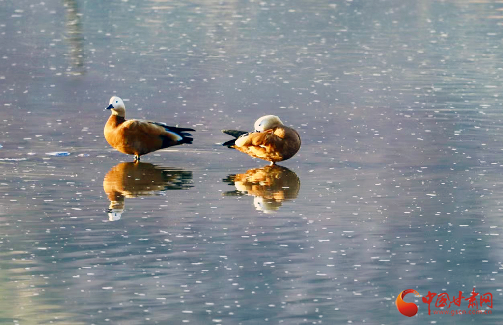 近日,平?jīng)龀缧庞瓉?lái)了數(shù)只水上客人——赤麻鴨。