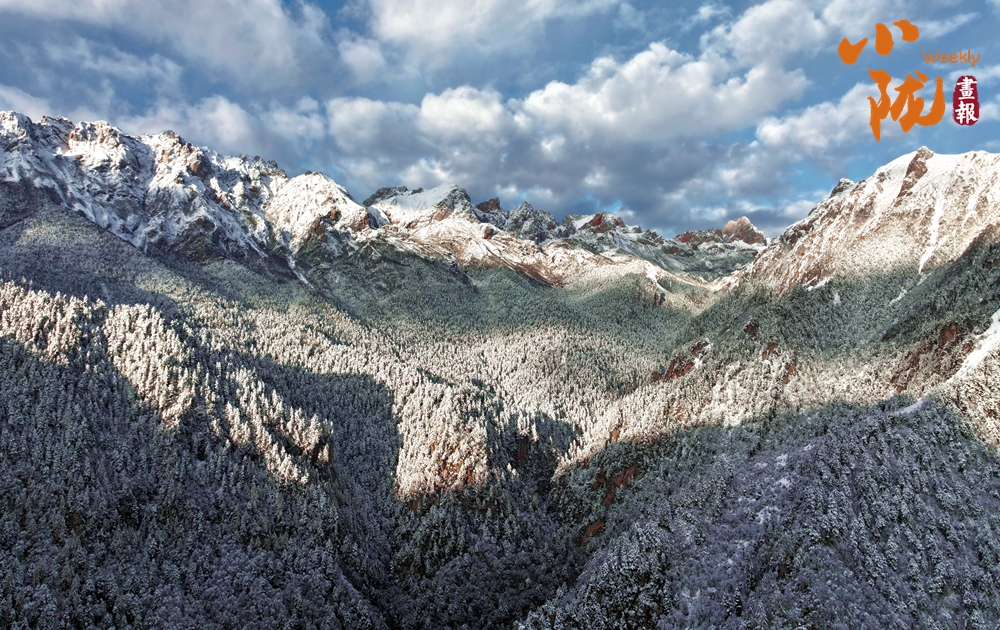 積雪如同軟綿綿的地毯鋪滿了整個(gè)官鵝溝,陽光透過云層照射在這片被雪覆蓋的世界,閃爍著溫柔的光芒。