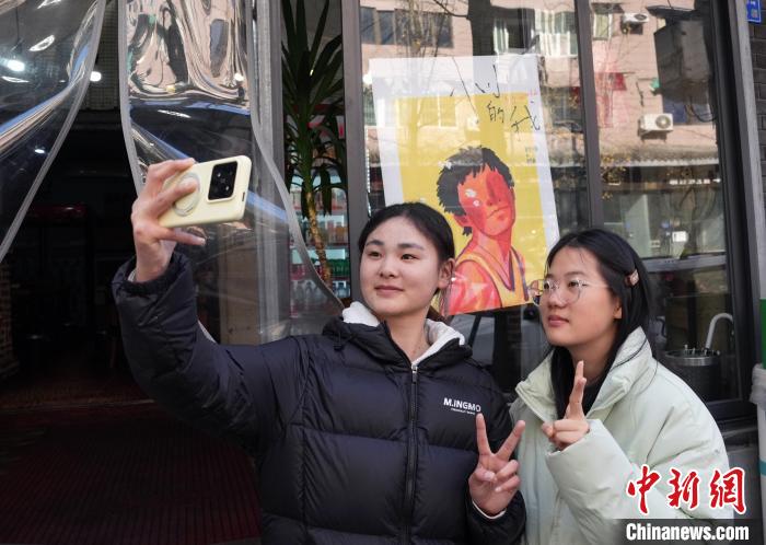 12月31日,四川成都,影迷在面館拍照留念。中新社記者 安源 攝