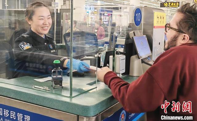 深圳皇崗邊檢站民警高效快捷為經福田口岸入境外籍旅客辦理查驗手續(xù)。(資料圖,皇崗邊檢站供圖)