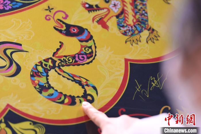 1月10日,在甘肅省敦煌市敦煌畫院內(nèi),游人參觀由敦煌畫院設(shè)計(jì)授權(quán)的中國郵政《敦煌福蛇》極限型明信片。中國郵政《敦煌福蛇》極限型明信片從敦煌壁畫里的藻井汲取靈感,集合敦煌紋樣、民藝剪紙等中國傳統(tǒng)藝術(shù)內(nèi)容,以春萌蛇、夏長蛇、秋實(shí)蛇、冬藏蛇對(duì)應(yīng)著四季祝福。中新社記者 李亞龍 攝