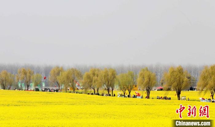 圖為彭澤縣棉船鎮(zhèn)萬(wàn)畝油菜花進(jìn)入盛花期,吸引眾多游客前來(lái)踏青賞花。彭琴 攝