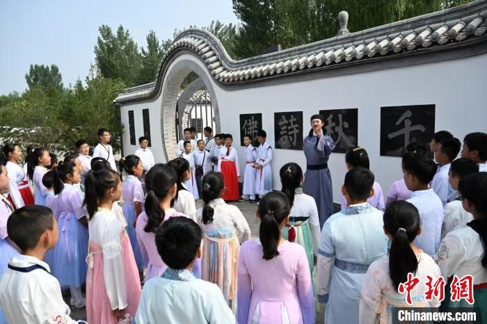 來(lái)自省內(nèi)外的學(xué)生在王維水墨小鎮(zhèn)參加研學(xué)活動(dòng)。(資料圖片) 吳遵民 攝