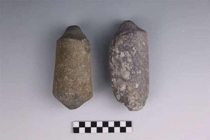 寺洼遺址內(nèi)出土的馬家窯類(lèi)型石鉆、石環(huán)半成品。新華社發(fā)(寺洼遺址聯(lián)合考古隊(duì)供圖)