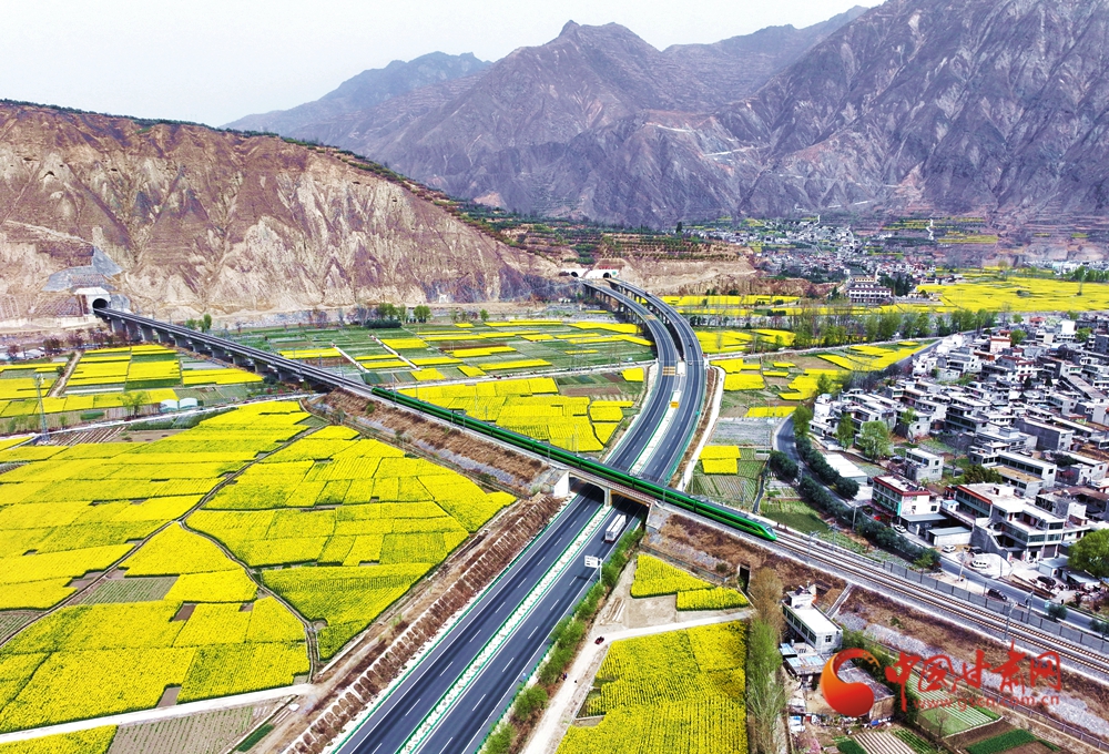 4月10日,列車(chē)在蘭渝鐵路宕昌縣沙灣鎮(zhèn)段附近行駛,穿行于花海之間?,F(xiàn)代交通動(dòng)脈與原始鄉(xiāng)野在此默契共生,火車(chē)轟隆駛過(guò),為春日畫(huà)卷增添了別樣的景致。