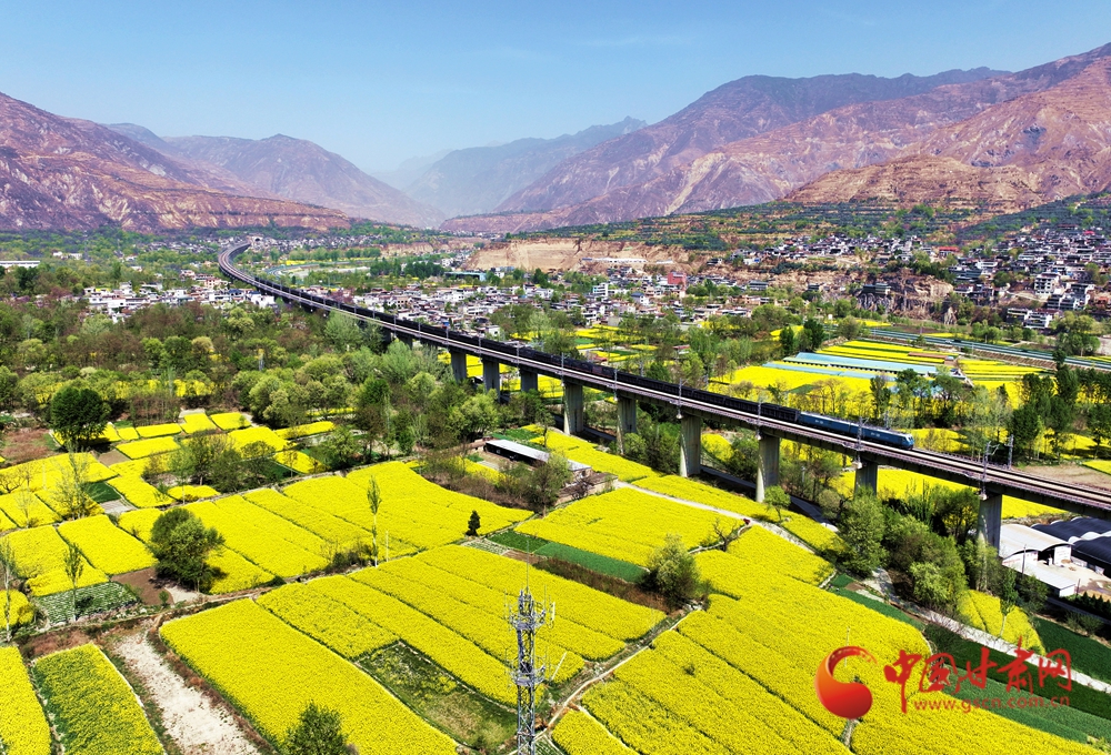 近日,隨著氣溫回升,武都、宕昌白龍江沿岸的油菜花競(jìng)相綻放,迎來(lái)最佳觀賞期,蘭渝鐵路列車(chē)在花海中穿梭,宛如一幅絕美的春日畫(huà)卷。