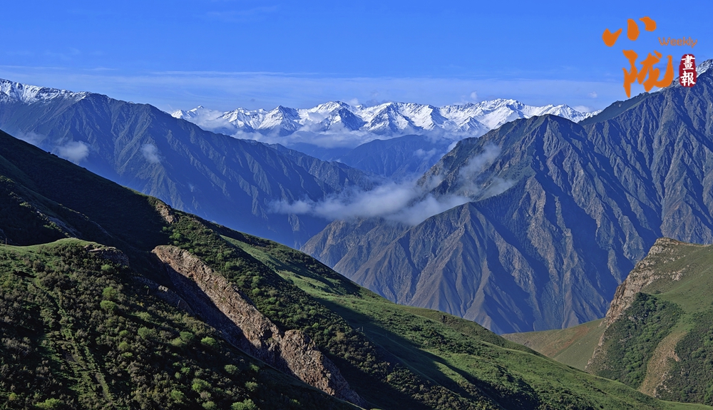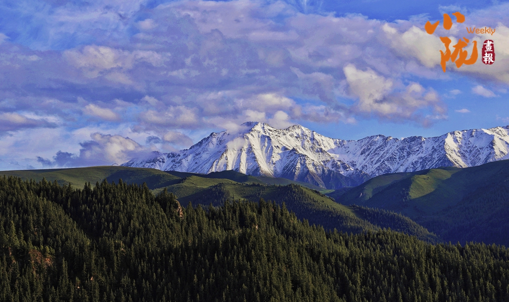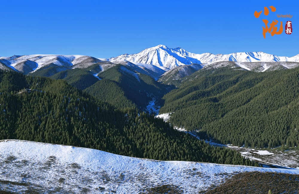 祁連雪峰周圍群峰羅列、層巒疊嶂,高低延綿的群山被此起彼伏的林海包圍,像一道道五彩的波浪,郁郁蔥蔥,生機(jī)盎然。站在祁連山巔俯瞰,冰川積雪與綠洲農(nóng)田、森林構(gòu)成震撼人心的生態(tài)畫(huà)卷。