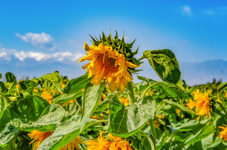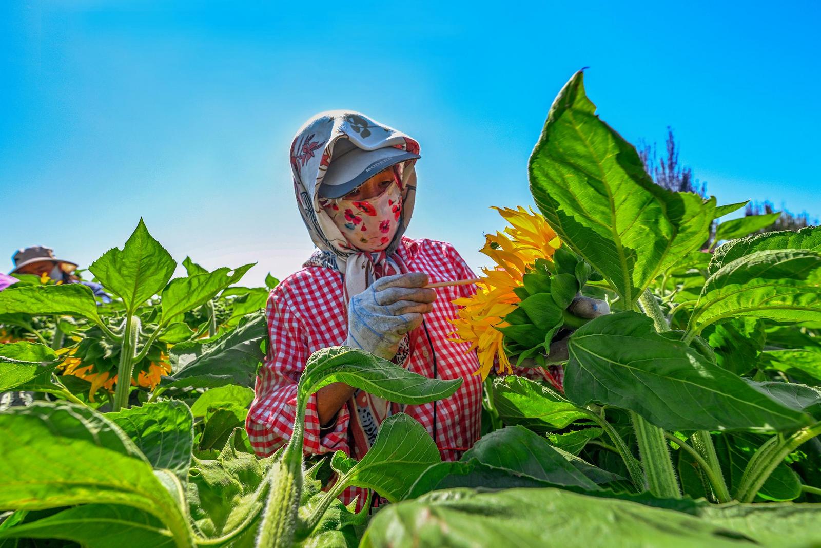中國甘肅網7月14日訊 據嘉峪關日報報道(融媒體中心記者 李巍 攝)近日,嘉峪關市新城鎮(zhèn)野麻灣村“千畝”制種向日葵迎來盛花期,朵朵花盤匯聚成金色花海,放眼望去,與雪山相融、與藍天相接,如詩如畫,美不勝收。