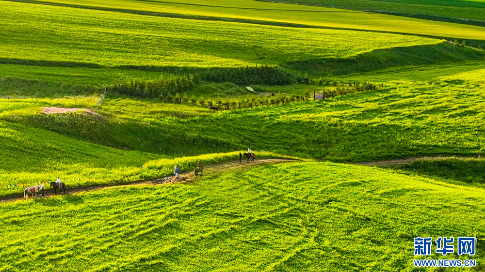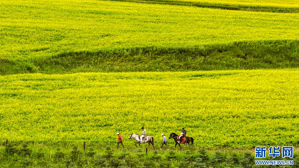 連日來,位于祁連山下的甘肅省張掖市民樂縣扁都口景區(qū)萬畝油菜進(jìn)入盛花期。金黃的油菜花海與草原綠野相連,空氣中彌漫的淡淡花香,醞釀山川,醉了游人。新華網(wǎng)發(fā)(王將 攝)